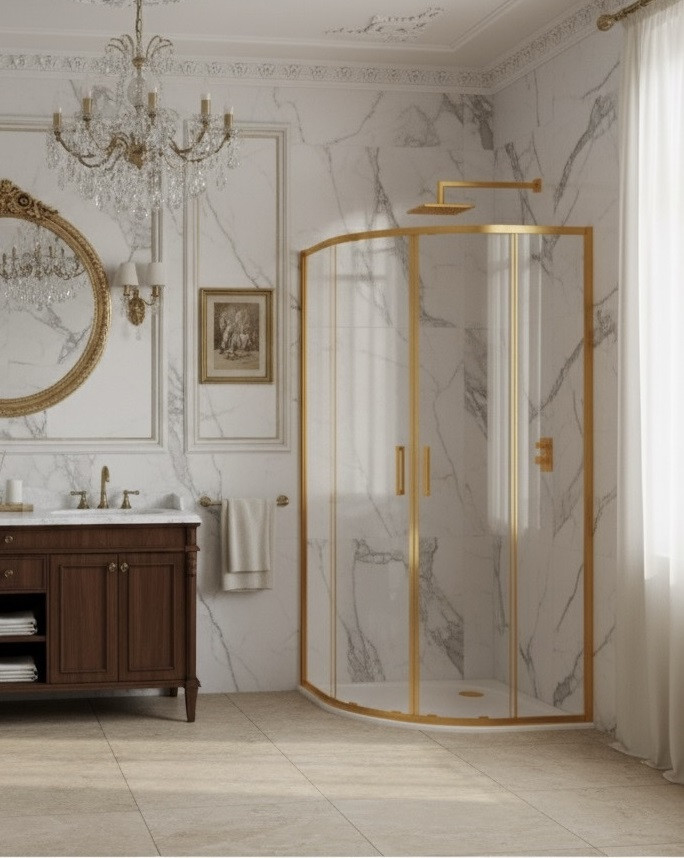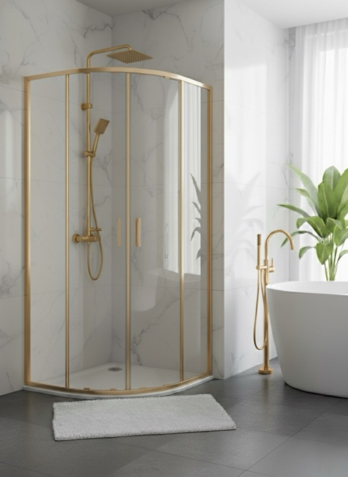 Душевой уголок CeramaLux 100х100х190 см матовое золото/прозрачное CL901-100 Matt Gold