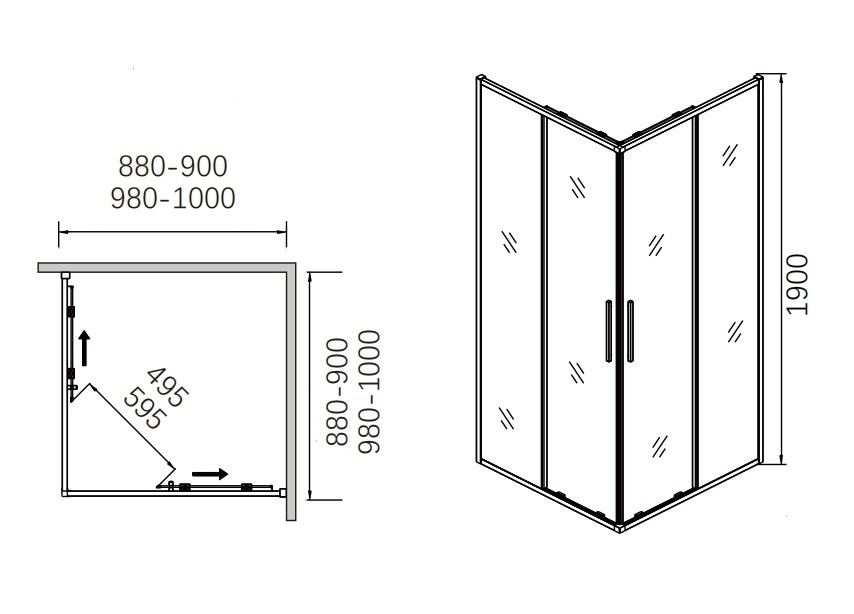 Душевой уголок CeramaLux 100х100х190 см оружейная сталь/прозрачное CL902-100 GREY