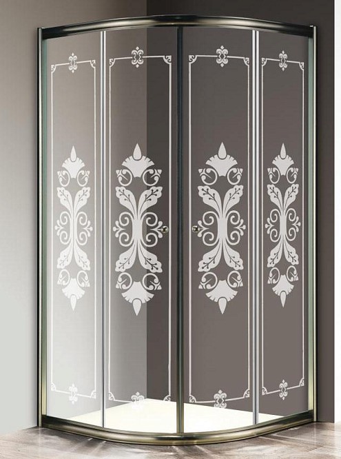Душевой уголок Cezares Giubileo R-2 100х100 см бронза/прозрачное с матовым принтом GIUBILEO-R-2-100-SCORREVOLE-CP-Br