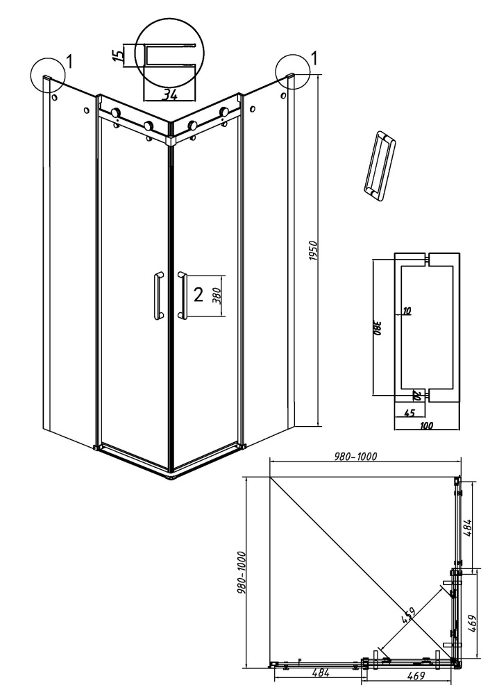 Душевой уголок Grossman Classic (100х100х195 см) черный/тонированное 300.K33.04.1010.21.10