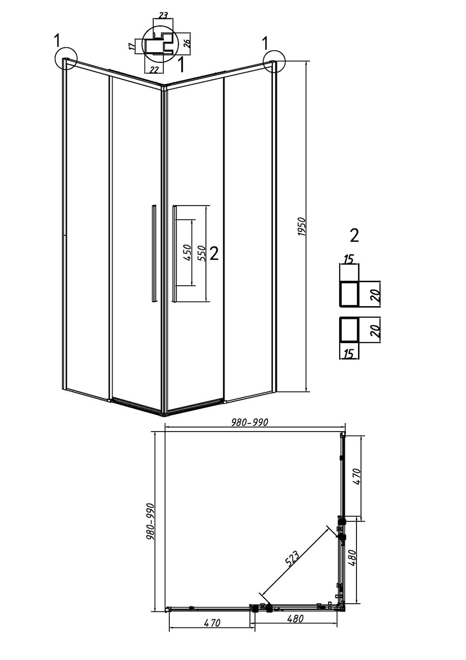 Душевой уголок Grossman Galaxy (100х100х195 см) графит сатин/прозрачное 300.K33.01.1010.42.00