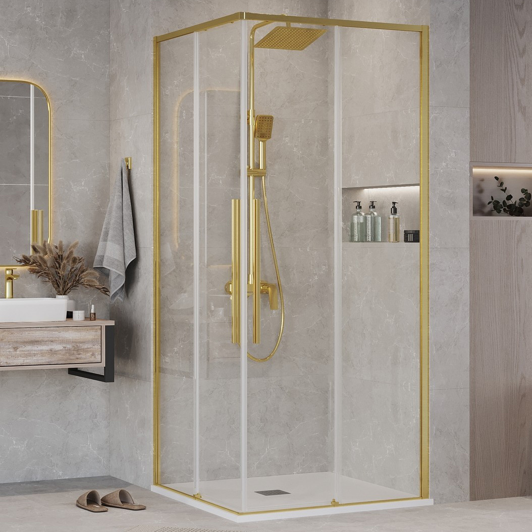 Душевой уголок Grossman Galaxy (100х100х195 см) золото сатин/прозрачное 300.K33.01.1010.32.00