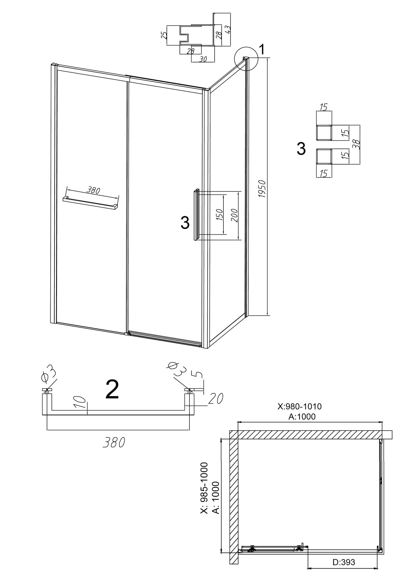 | Конструкция двери | 1 раздвижная, вход 39,3 см/ ориентация универсальная |