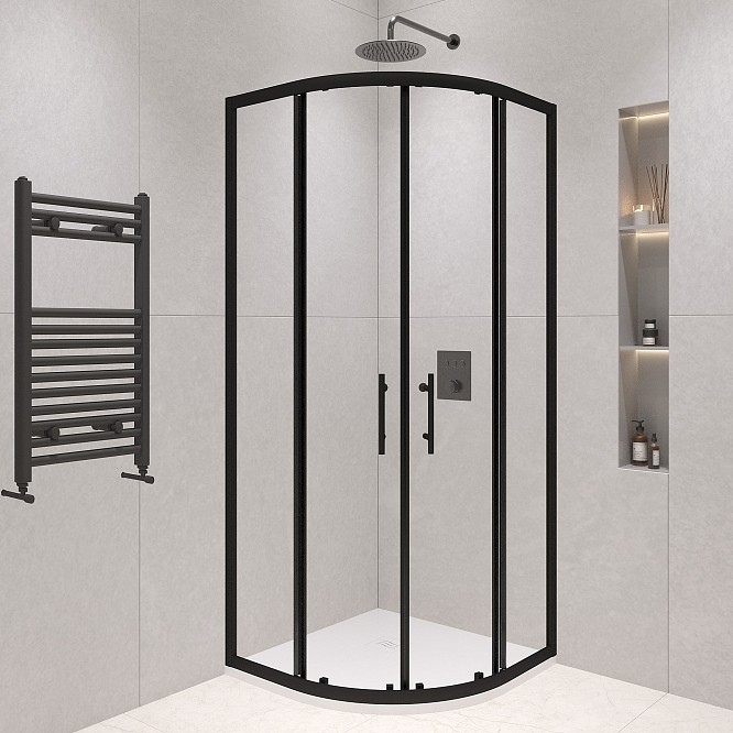 Цвет профиля данного душевого уголка черный, что придает ему особую элегантность и изысканность. Черный цвет профиля идеально сочетается с другими элементами ванной комнаты и создает стильный и гармоничный образ.
