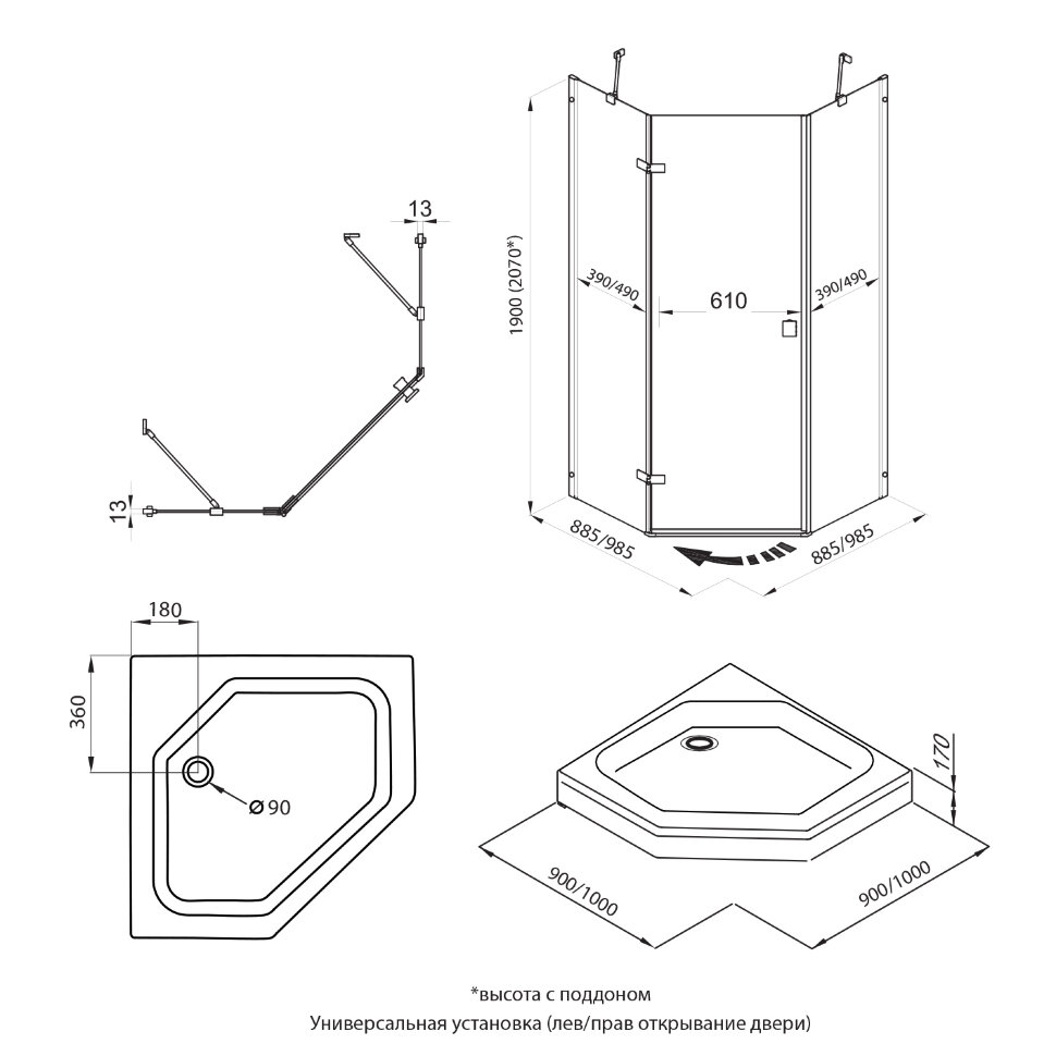 Душевой уголок с поддоном Triton Сигма Хром 100х100 Щ0000056815