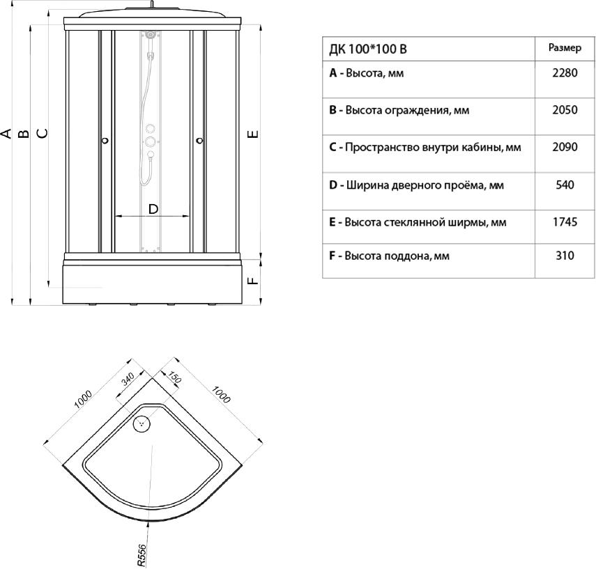 Размеры: 100х100х205 см