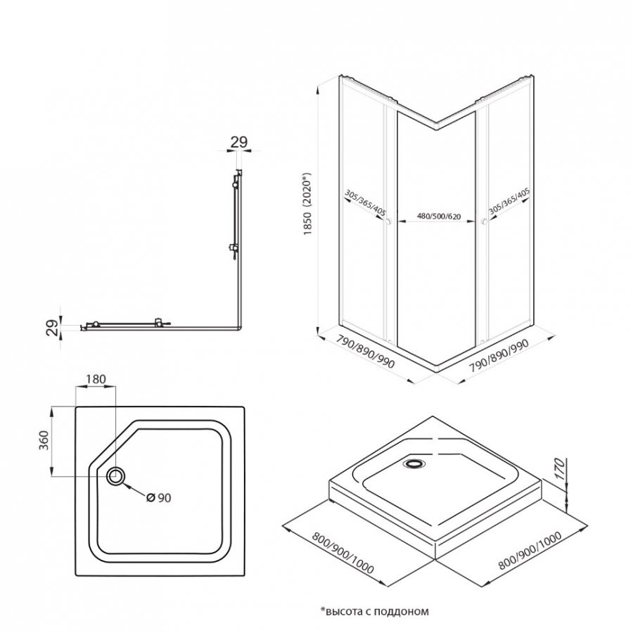 Размеры: 100х100х202 см