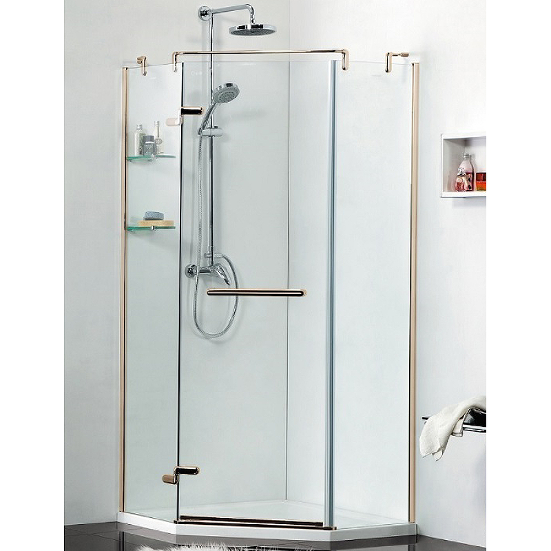 Душевой уголок с полками Azario MONTREAL AZ-NWG3231 1000 R/L GOLD 100х100х200 см золото/прозрачное 00046339/ 00084103