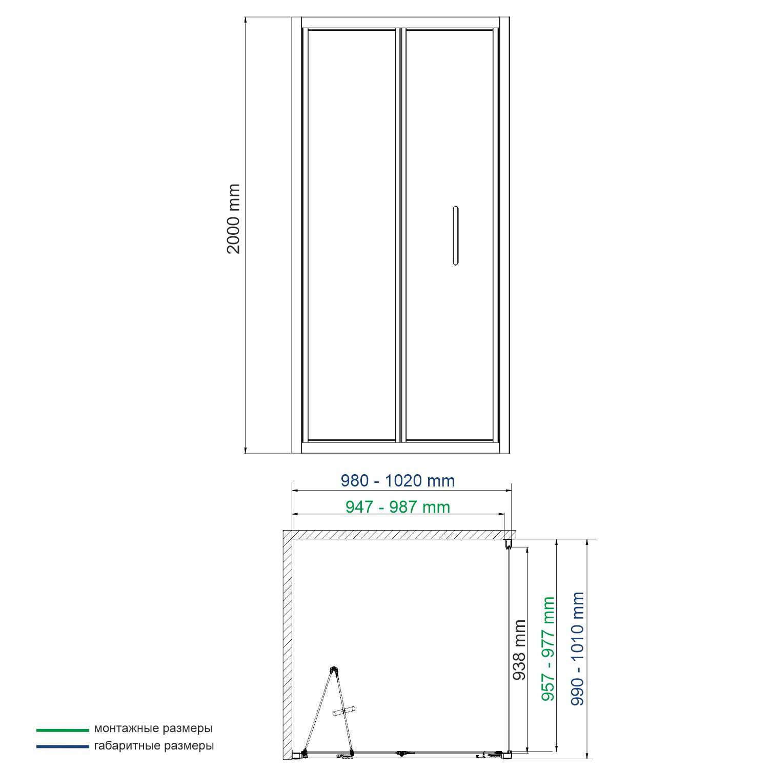 | Конструкция двери | Складная 2 секции/ механизм из стали |
