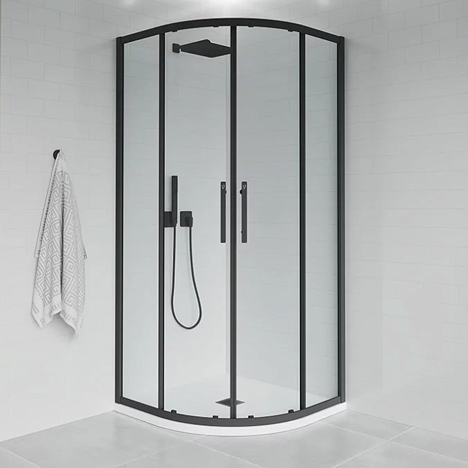 - Душевой уголок Veconi Evo 100х100 см черный матовый/ прозрачное E2-B-100100-01-C9