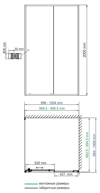 | Особенности | Раздвижной механизм из сплава металлов/ регулирующий профиль двери до 4 мм, профиль панели до 6 мм/ силиконовые уплотнители |