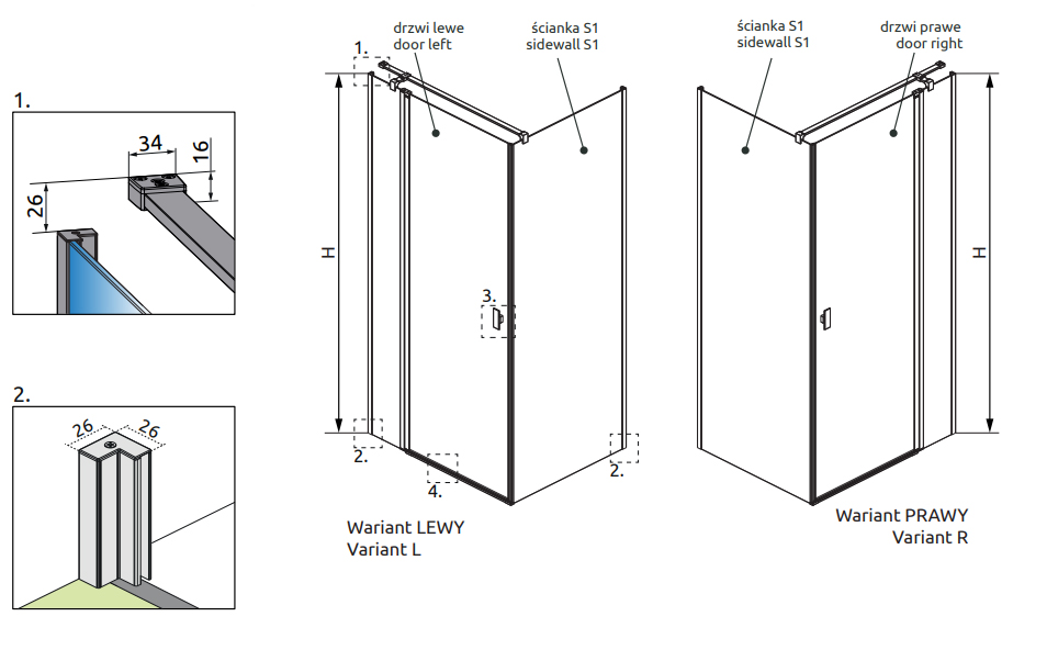 Внимание! Для установки требуется боковая стенка. Тем самым конструкция превращается в душевой уголок. Установка двери отдельно не предусмотрена!