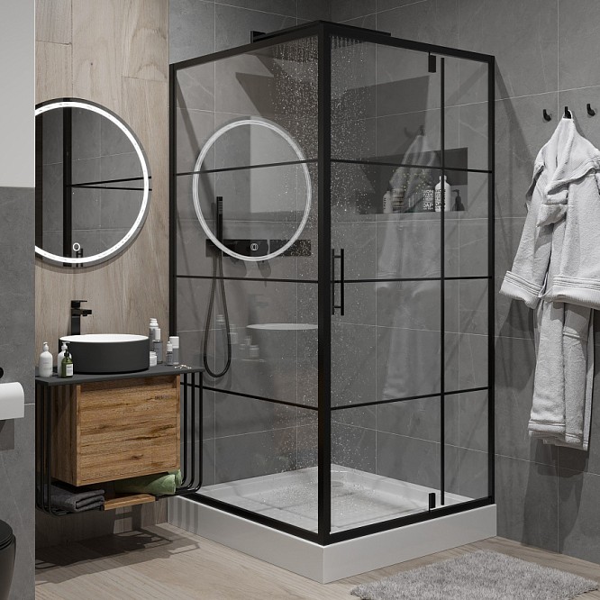 Квадратный душевой уголок Niagara Nova (100х100х195 см) NG-0200-08ВLACK черный/ клетка _02000831BLACK