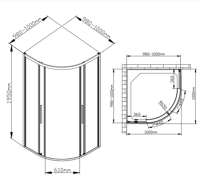Полукруглый душевой уголок AvaCan HB100MT (100х100 см) матовое