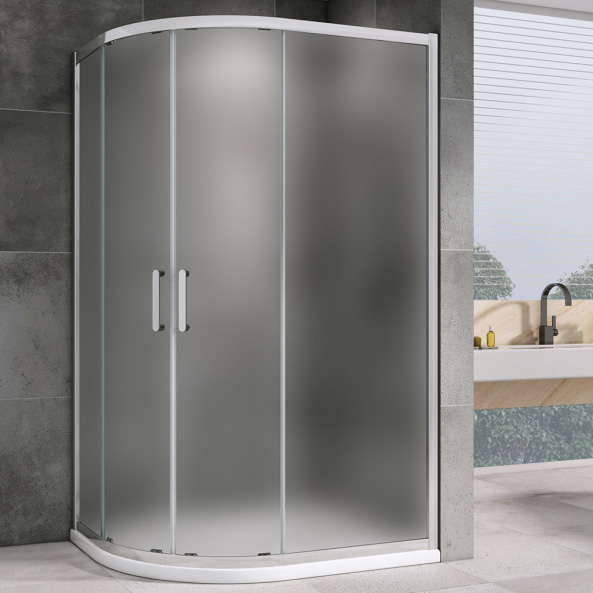 Модель оснащена раздвижными дверями на двойных роликах с металлическими ручками для плавного и тихого открывания. Два полотна дверей обеспечивают удобный ежедневный доступ, ширина входа — 506 мм. Доводчики не предусмотрены. Поддон не входит в комплект, его можно подобрать отдельно.