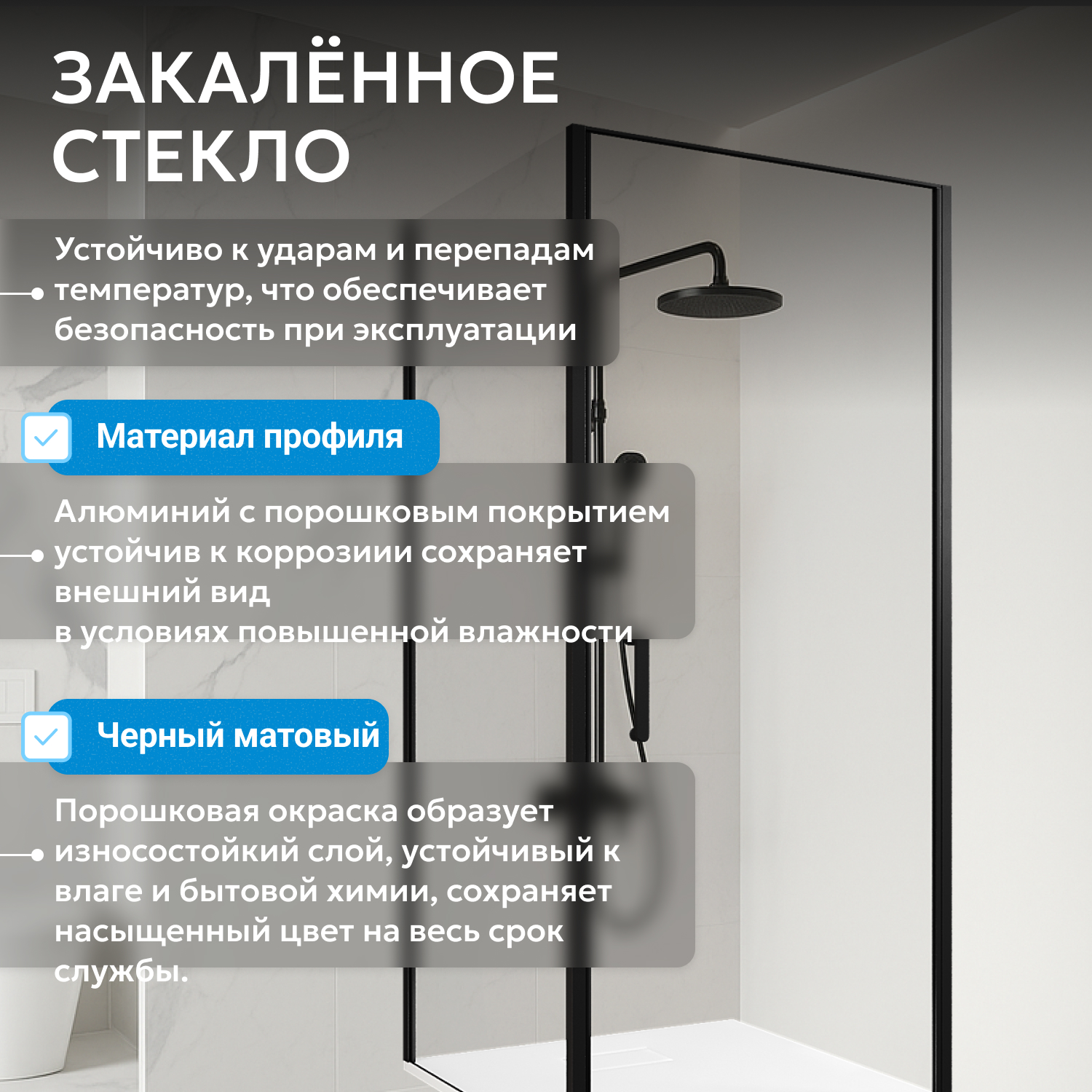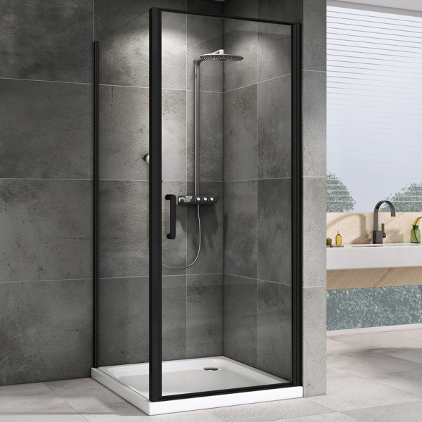 Распашная дверь с металлической ручкой облегчает повседневное использование. Маятниковая петля с настройкой направления открытия позволяет выбрать открытие внутрь либо наружу. Черный профиль подчеркивает современный стиль и соответствует актуальным трендам оформления.