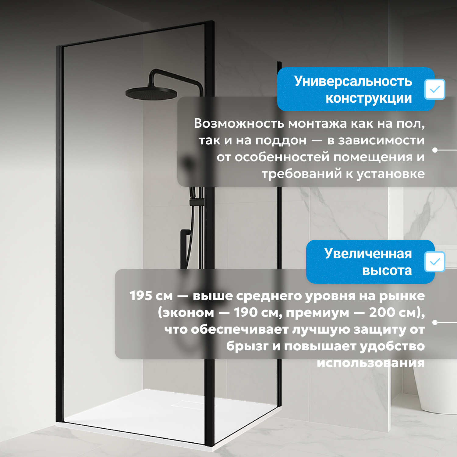 Душевой уголок ABBER Sonnenstrand AG04100B-S80B — это немецкое качество, современный дизайн, металлическая фурнитура, универсальное открывание двери, фирменная гарантия и официальное сервисное обслуживание в России.