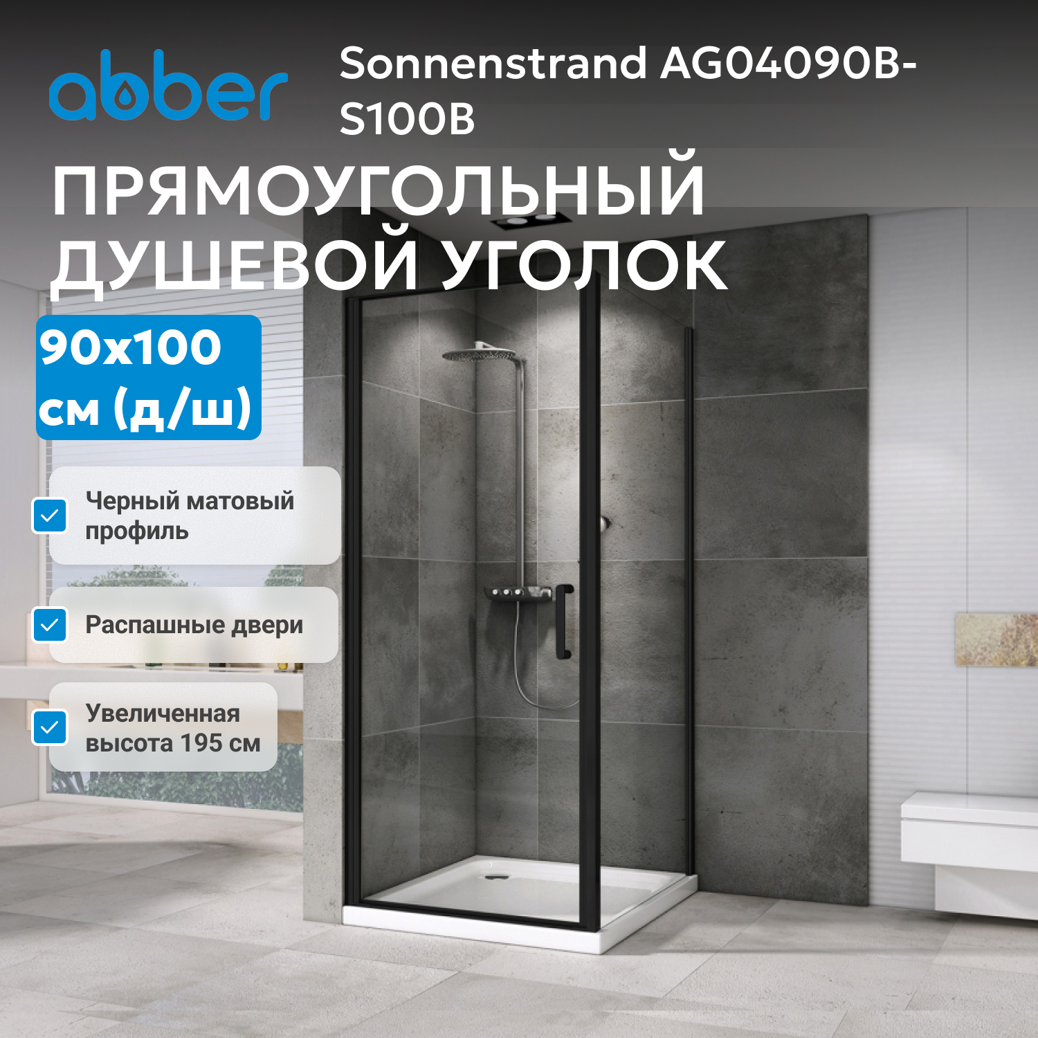 Душевой уголок Abber Sonnenstrand 90х100х195 см черный/прозрачное AG04090B-S100B