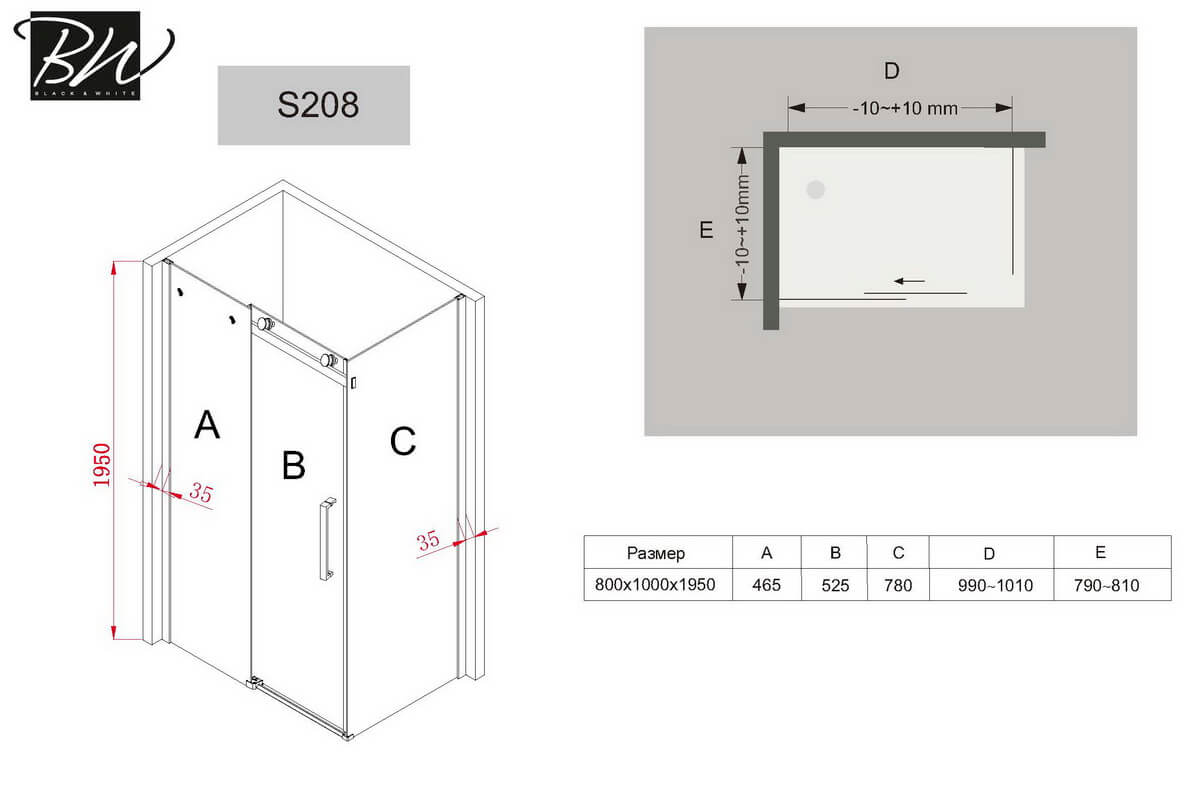 Душевой уголок Black & White Stellar Wind S208 80х100х195 см хром/прозрачное 2088010