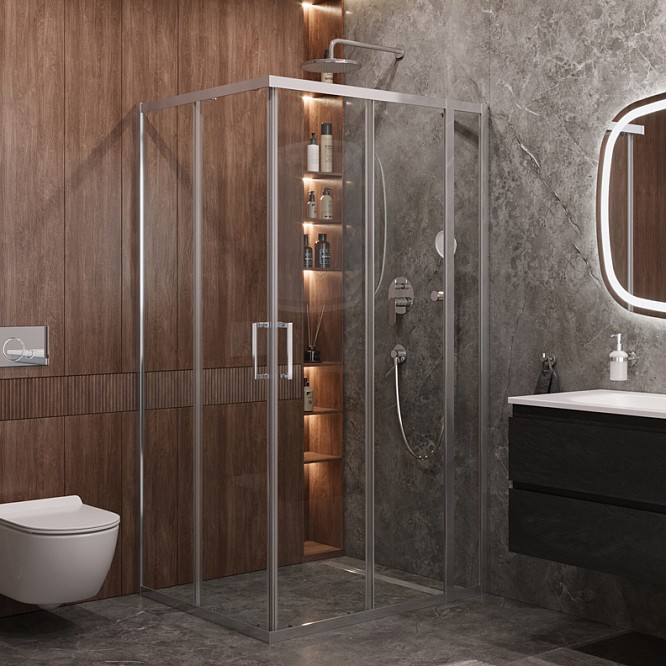 - Душевой уголок Cezares Molveno AH-21 100х80 см хром/прозрачное MOLVENO-AH-21-80+20-C-Cr-IV