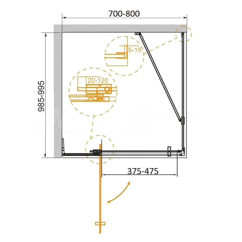 | Конструкция двери | 1 распашная, вход 37,5-47,5 см |