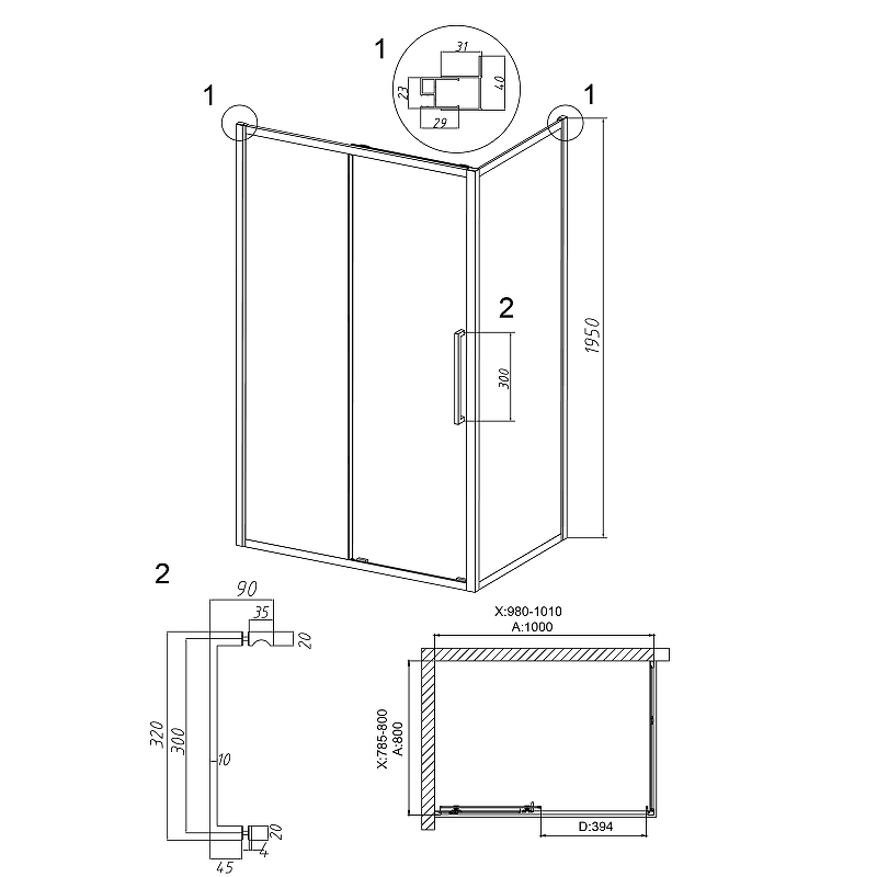 | Конструкция двери | 1 раздвижная, вход 39,4 см |