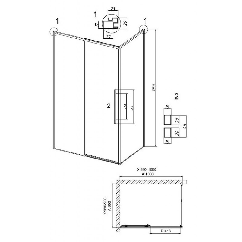 Душевой уголок Grossman Galaxy (100х90х195 см) черный/шиншилла 120.K33.01.1090.21.02