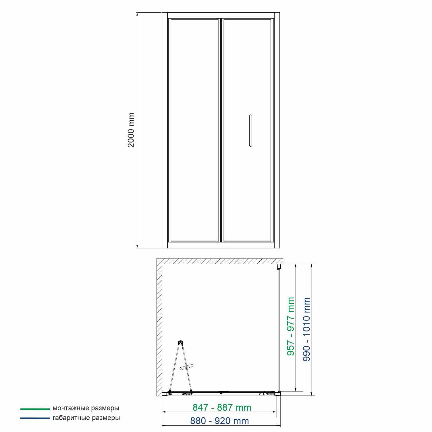 | Конструкция двери | Складная 2 секции/ механизм из стали |