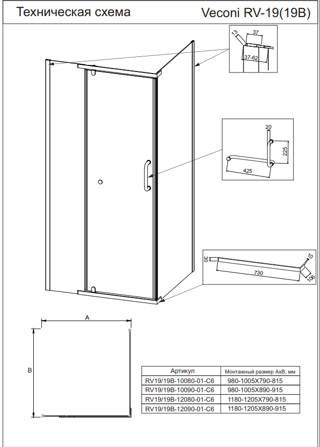 Душевой уголок Veconi Rovigo RV-19 100х80 см прозрачное/ хром RV19-10080-01-C5
