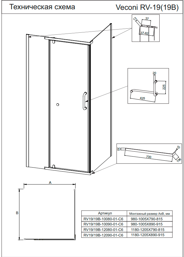 Душевой уголок Veconi Rovigo RV-19 100х90 см прозрачное/ хром RV19-10090-01-C5