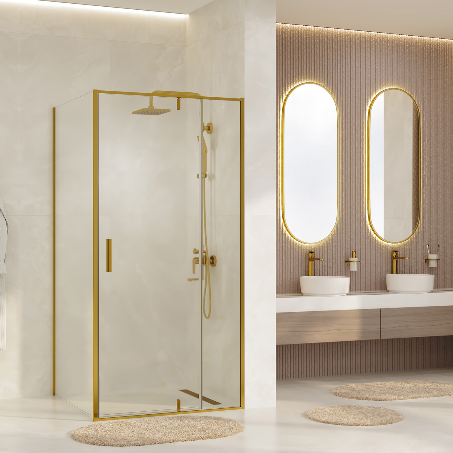 Душевой уголок WasserKRAFT Aisch (90х100х200) матовое золото/прозрачное 55P18
