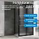 Раздвижная дверь оснащена металлической ручкой и двойными роликами для легкого и плавного открывания. Конструкция защищена от загрязнений и проста в уходе.