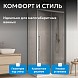 Закаленное прозрачное стекло толщиной 6 мм обеспечивает безопасность и надежность. Отсутствие доводчиков и водоотталкивающего покрытия облегчает уход. Раздвижная дверь перемещается на двойных роликах для плавного открытия. Металлическая ручка удобна для ежедневного использования, универсальная модификация подходит для разных вариантов установки.