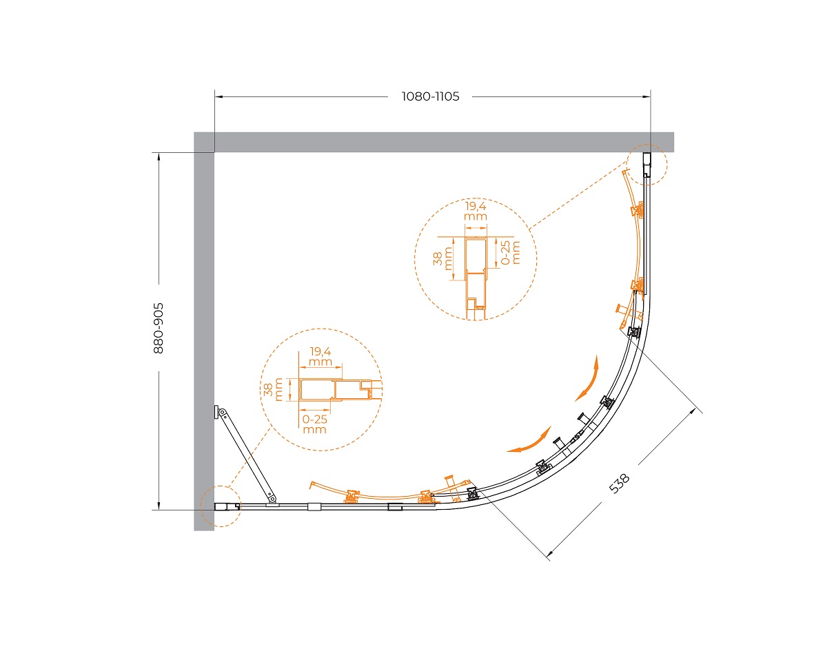 - Для уголков/дверей/шторок