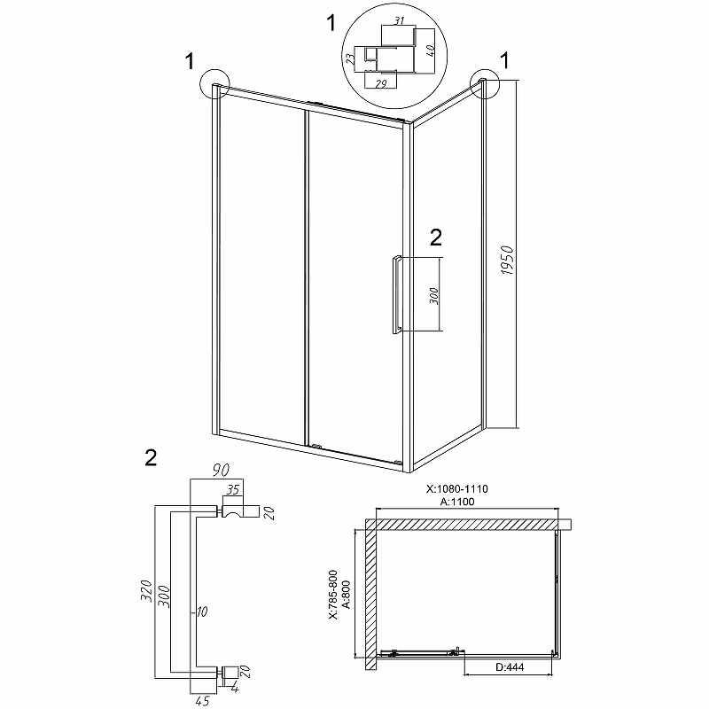 | Конструкция двери | 1 раздвижная, вход 44,4 см |