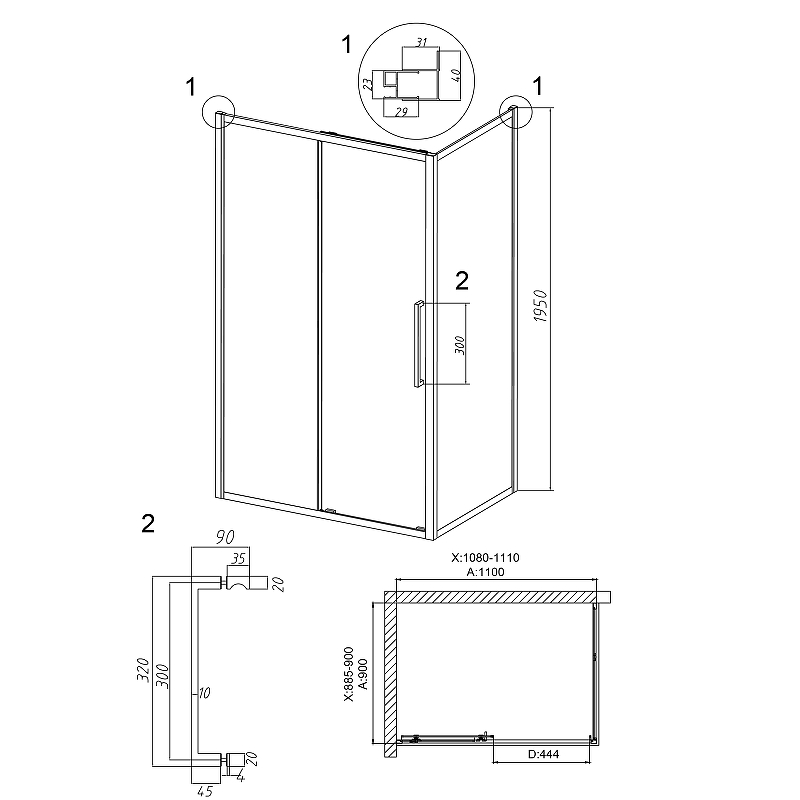 | Конструкция двери | 1 раздвижная, вход 44,4 см |