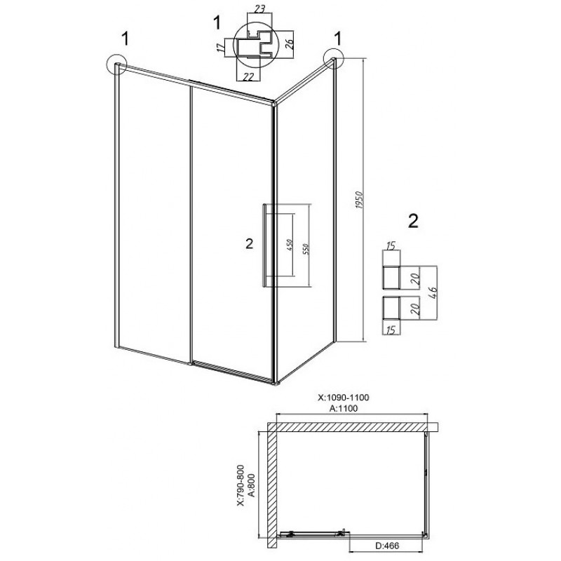 | Конструкция двери | 1 раздвижная/ вход 46,6 см/ ориентация левая |
