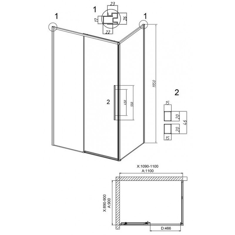 Душевой уголок Grossman Galaxy (110х90х195 см) черный/шиншилла 120.K33.01.1190.21.02