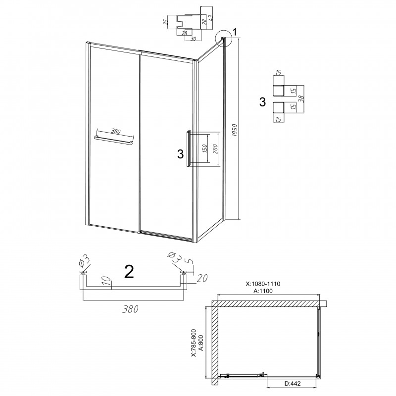 | Конструкция двери | 1 раздвижная, вход 44,2 см/ ориентация универсальная |