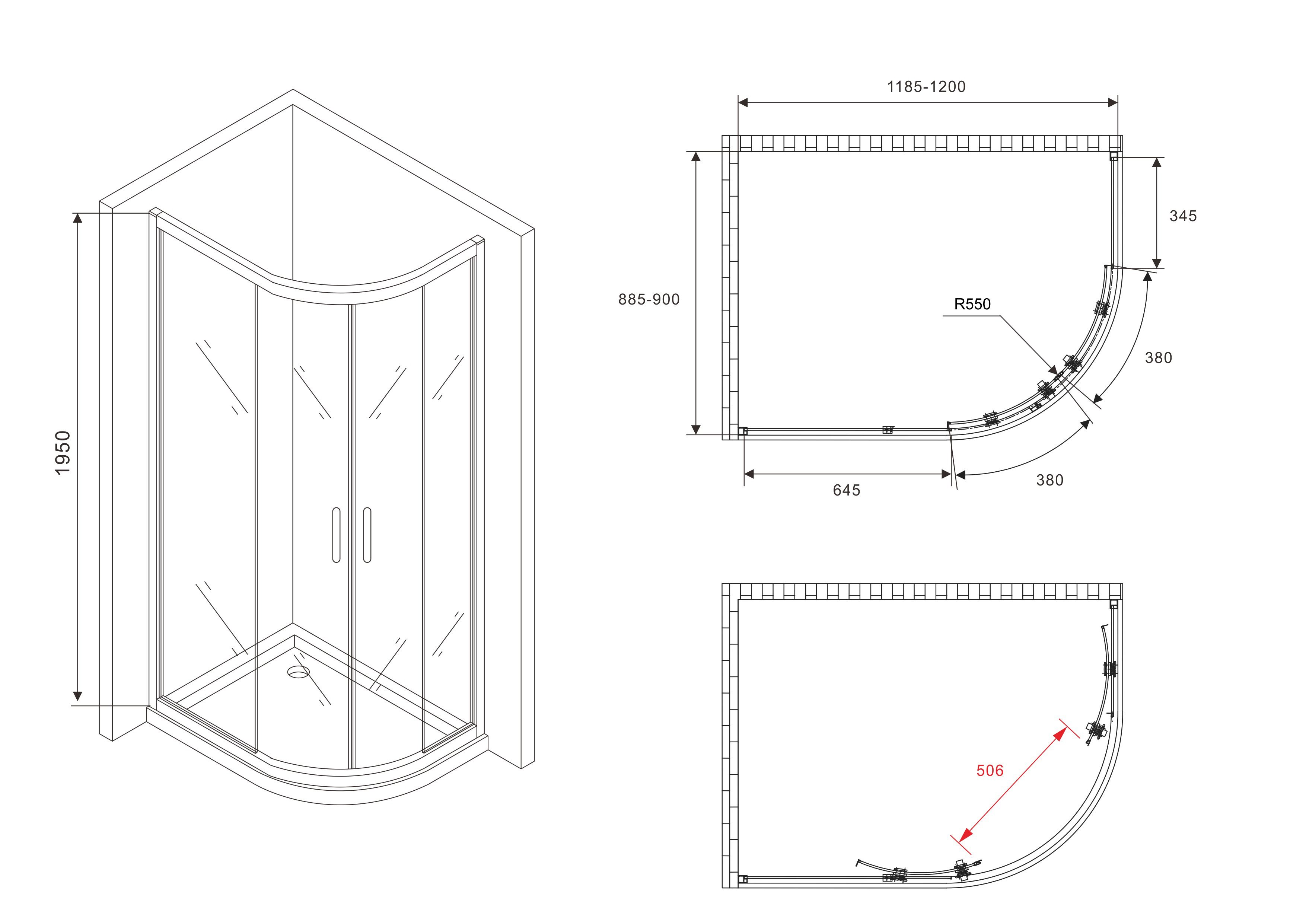 - Душевой уголок Abber Schwarzer Diamant 120х90х195 см черный/прозрачное AG01129B