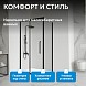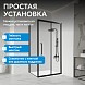 Возможен универсальный монтаж с низким поддоном по выбору. Высота конструкции — 195 см, ширина входа — 598 мм, что удобно для пользователей разного роста. Модель не оснащена доводчиками и водоотталкивающим покрытием, что обеспечивает простой уход и долговечность. Гарантия — 3 года.