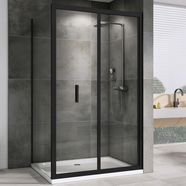 Прямоугольная форма и черный профиль подходят для современных интерьеров. Уголок совместим с низким поддоном, облегчая вход и делая конструкцию универсальной. Отсутствие доводчиков и водоотталкивающего покрытия упрощает обслуживание и снижает затраты на уход.