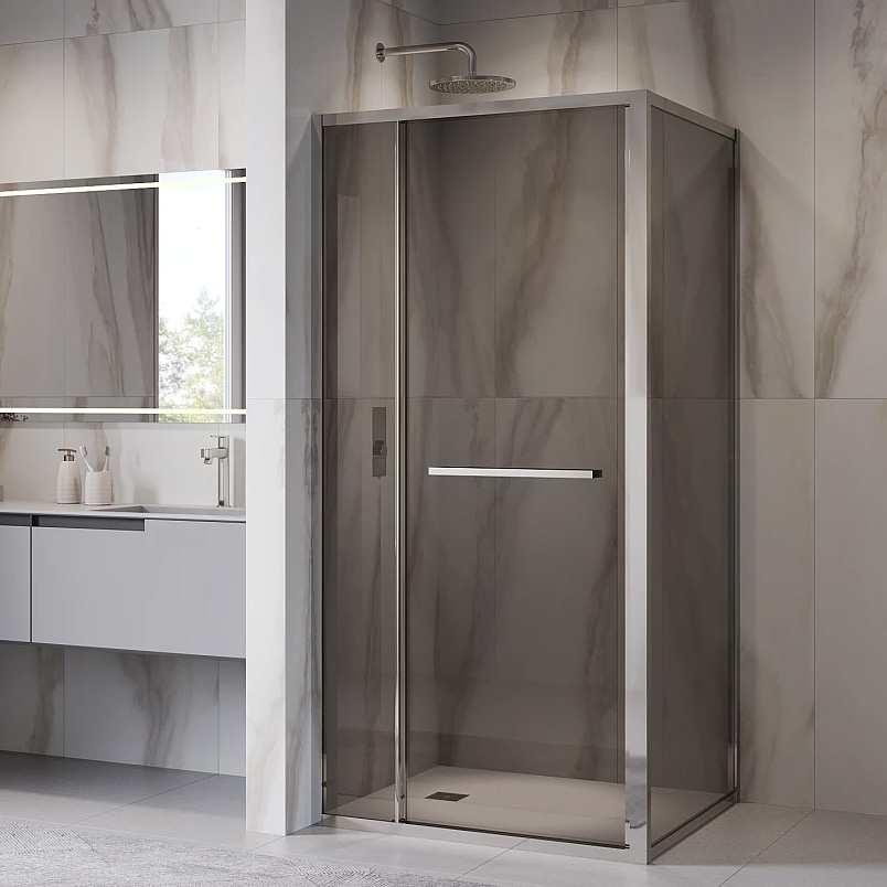 Модель имеет тонированное темное стекло графитного оттенка. Выберите между тонированным и прозрачным стеклом, чтобы максимально адаптировать душевой угол к вашему интерьеру.