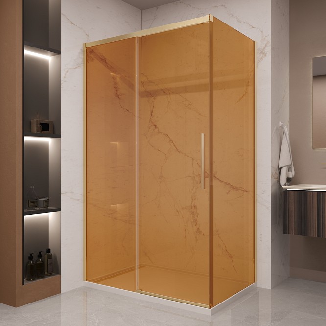 Душевой уголок Vincea Stella 120х90 см золото браш/янтарь VSR-1ST9012GSG