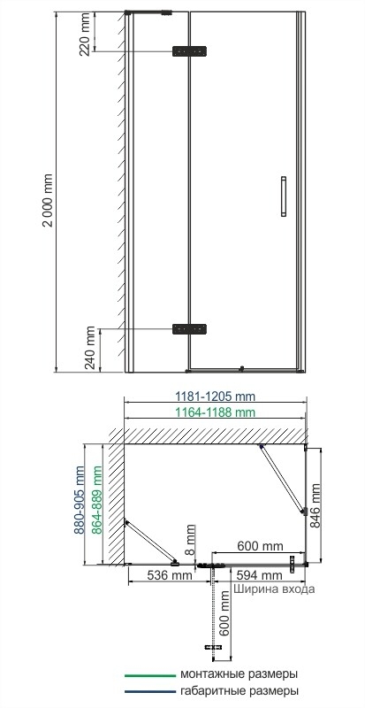 | Монтаж | В угол, ориентация левая/ правая |