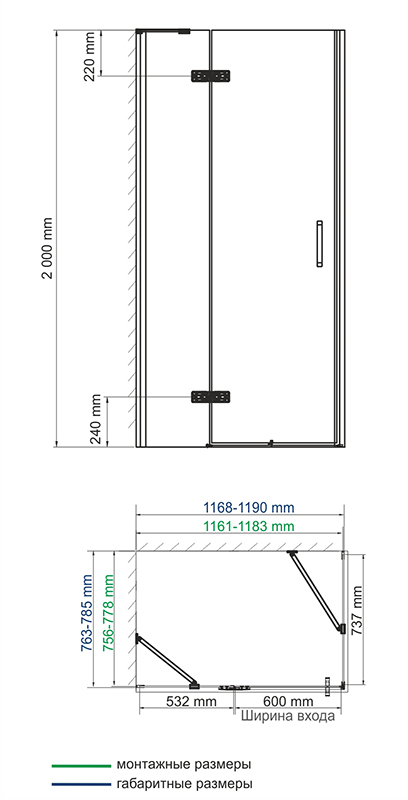 | Монтаж | В угол, ориентация левая/ правая |