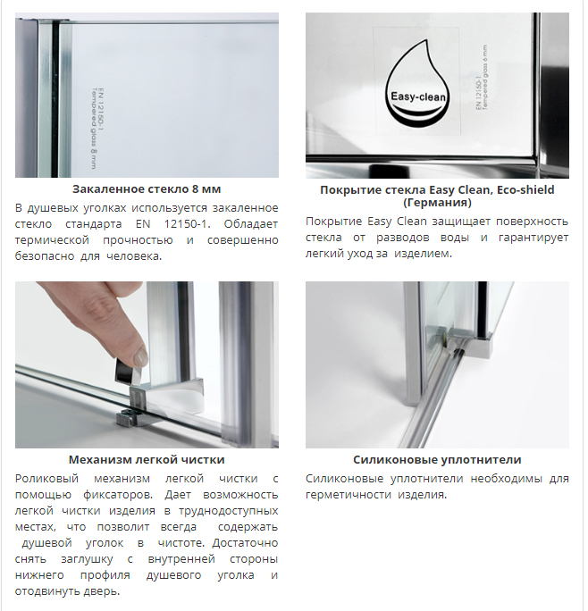 Дает возможность легкой чистки изделия в труднодоступных местах, что позволит всегда содержать душевой уголок в чистоте.