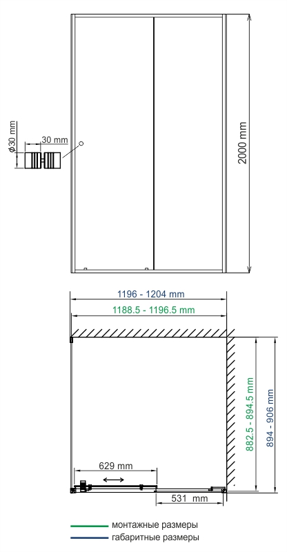 | Конструкция двери | 1 раздвижная/ вход 51,4 см |