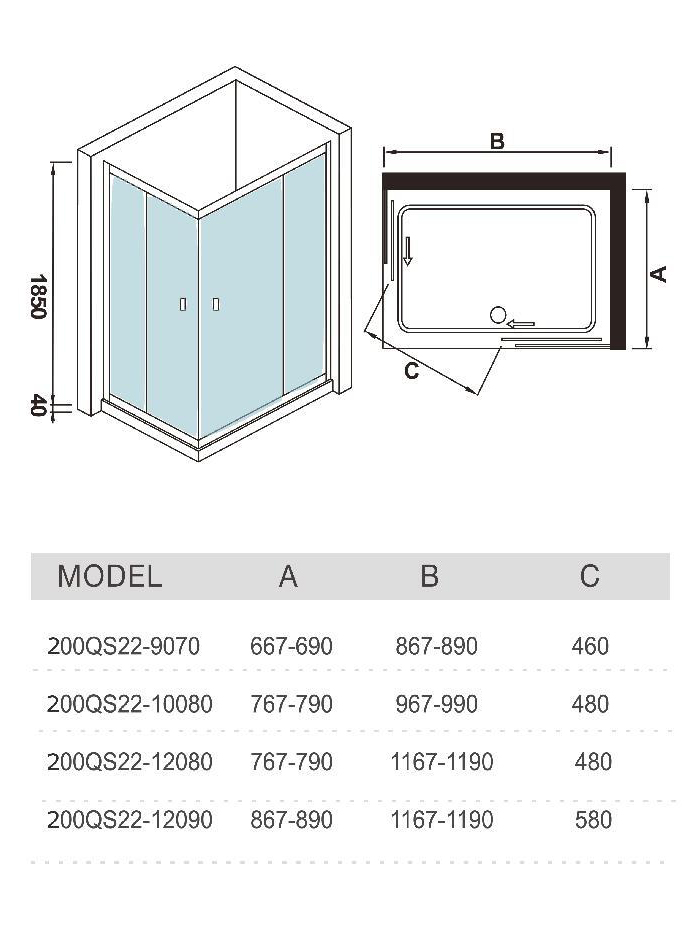 Душевой уголок WeltWasser 200QS22-12080 (120х80х185 см) хром/прозрачное 10000001230