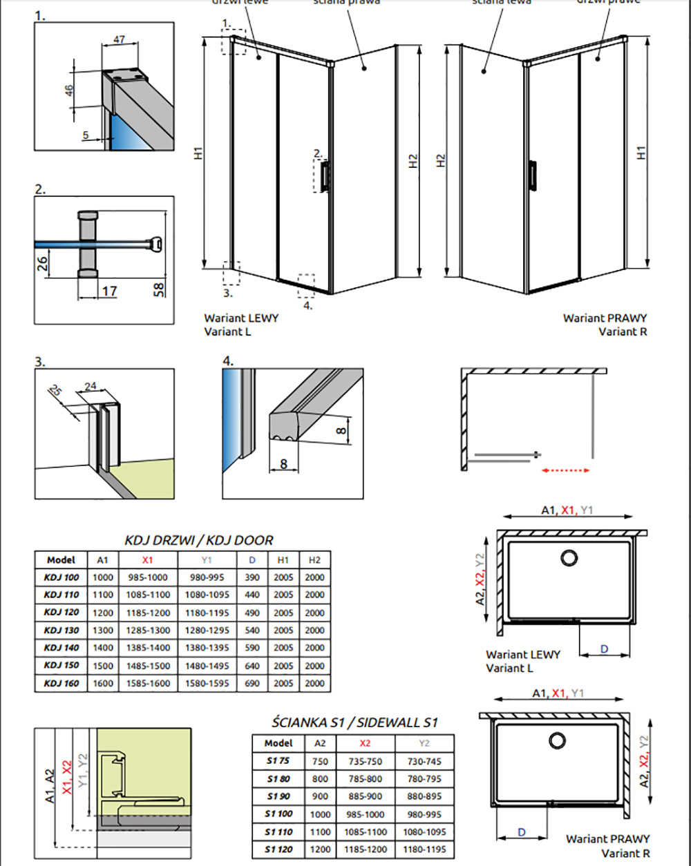 Коллекция Idea - это первая коллекция в стиле настоящего минимализма — двойные ролики спрятаны внутри профилей, на пристенных профилях отсутствуют даже заглушки болтов — в место них маскировочная лента Nastro Chromo. Все изделия серии допускается устанавливать как на поддон так и непосредственно на пол. Кроме того, все изделия допускается устанавливать с порогом или без порога меняя нижний фиксатор (в комплекте).